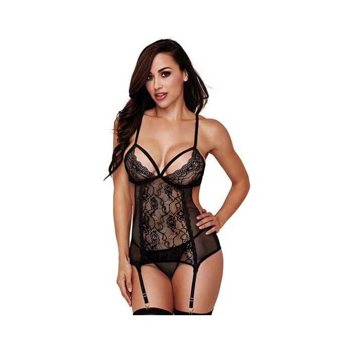 2pc lace & mesh chemise garterset - body encaje con liguero