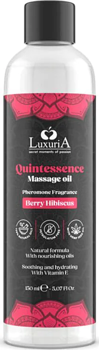 El aceite de masajes Intimateline Luxuria fórmula natural que nutre la piel y aporta un aroma sensual. Indicado para quienes buscan un toque de erotismo en sus masajes. Sin embargo, su uso requiere de una buena cantidad para obtener el deslizamiento deseado, lo que puede ser un inconveniente para algunos.