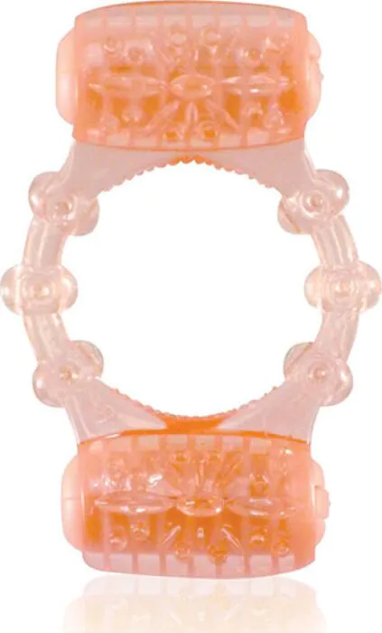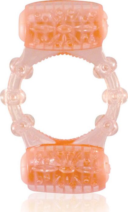The Two-O es una anilla vibradora desechable en naranja transparente con doble motor diseñada para colocarse en la base del pene. Está hecha en TPE/Silicona apto para el cuerpo, con la elasticidad suficiente para ajustarse y ayudar a mantener una erección más firme durante su uso, mientras la parte superior estimula el clítoris y la parte inferior actúa sobre los testículos.