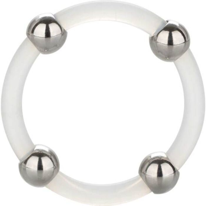 Mejora tu resistencia y sensibilidad con el anillo de silicona CALEXOTICS. Con cuentas de acero para intensificar el placer tanto para ti como para tu pareja. Ideal para quienes buscan ampliar sus experiencias.