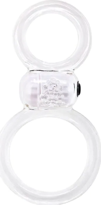 Anillo doble extra elástico que aprieta la base del pene y de los testículos e incorpora una balita vibradora entre ambas anillas. Pensado para quien busca un refuerzo de la erección y estimulación extra durante la penetración; su manejo es simple y la balita puede orientarse hacia el clítoris o el pene según la preferencia. Recomendado para usuarios que valoran comodidad y discreción.