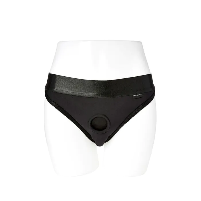 Arnés de tela elástica pensado para llevar todo el día y preparado para acoplar juguetes con una junta tórica fija de 1,5" (3,81 cm). Cuenta con bolsillos para balas que añaden estimulación y paneles internos que sujetan el accesorio con seguridad. Para quien busca confort y discreción en una pieza que también sirve como ropa interior.