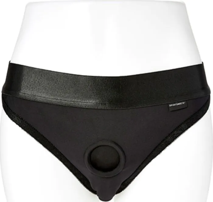 Arnés de corte alto y tejido elástico de Sportsheets pensado para llevar como ropa interior y listo para el juego. Junta tórica de 1,5'' para la mayoría de consoladores con base estándar, dos bolsillos para balas y material que controla la humedad. Perfecto si buscas comodidad y discreción en un arnés de tela.