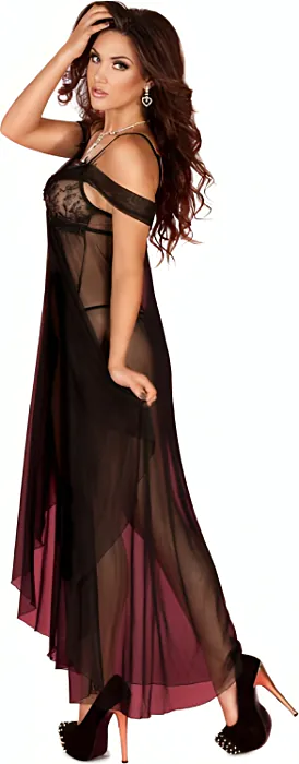 Disfruta de la suavidad y ligereza del babydoll largo de Chilirose, confeccionado en malla de alta calidad que acaricia tu piel. Este modelo, que incluye un tanga a juego, combina elegancia y un toque seductor, convirtiéndose en una prenda esencial para tus momentos más especiales.