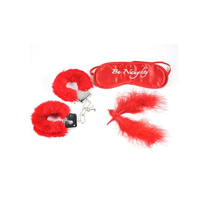 Be naughty set esposas antifaz y pluma