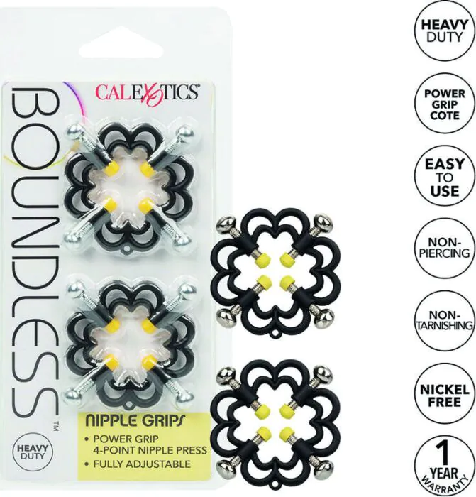 Abrir la puerta a sensaciones intensas con las pinzas para pezones Boundless de CALEXOTICS. Diseñadas con una prensa atornillable de 4 puntos, puedes personalizar la tensión para intensificar cada toque. Fabricadas en metal de alta resistencia, ofrecen un agarre eléctrico que potencia cada momento de placer.