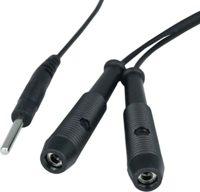 Conecta el cable a tu estimulador de doble canal y a los accesorios que prefieras. Este cable es compatible con todos los estimuladores ElectraStim, permitiéndote disfrutar de configuraciones ilimitadas.