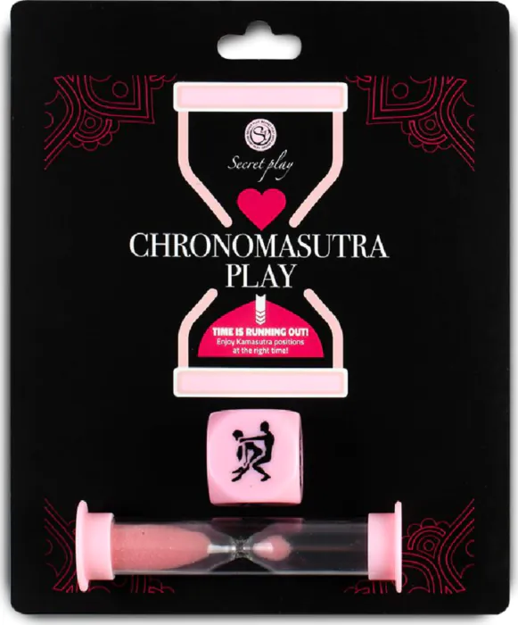 Chronomasutra de SECRETPLAY es un juego erótico para parejas que utiliza un dado de posturas y un reloj de arena para cronometrar cada postura 1 minuto. Es una propuesta directa y sin complicaciones para quienes quieran introducir ritmo y reto en sus encuentros. Recomendado para parejas que busquen variar posturas de forma lúdica; no es una guía técnica de Kamasutra.