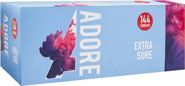 Pack grande de 144 condones Pasante Adore Extra Sure: preservativos de látex con forma ensanchada en el glande y depósito. Pensados para quien busca un ajuste más cómodo y seguridad en cada uso. Talla regular, lubricados y sin espermicida; buena opción para uso frecuente en pareja o para profesionales que necesitan suministro a granel.