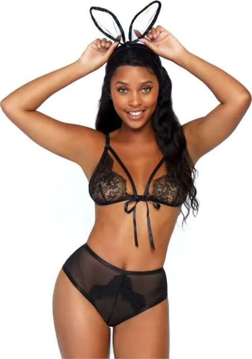 | Incluye | Sujetador de encaje con tirantes, bragas con apertura posterior y rabito esponjoso, diadema con orejas |