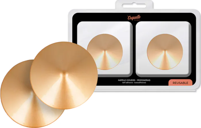 Estos cubre pezones de metal dorado son el complemento perfecto para sorprender y seducir. Con cinta autoadhesiva, son fáciles de poner y quitar.