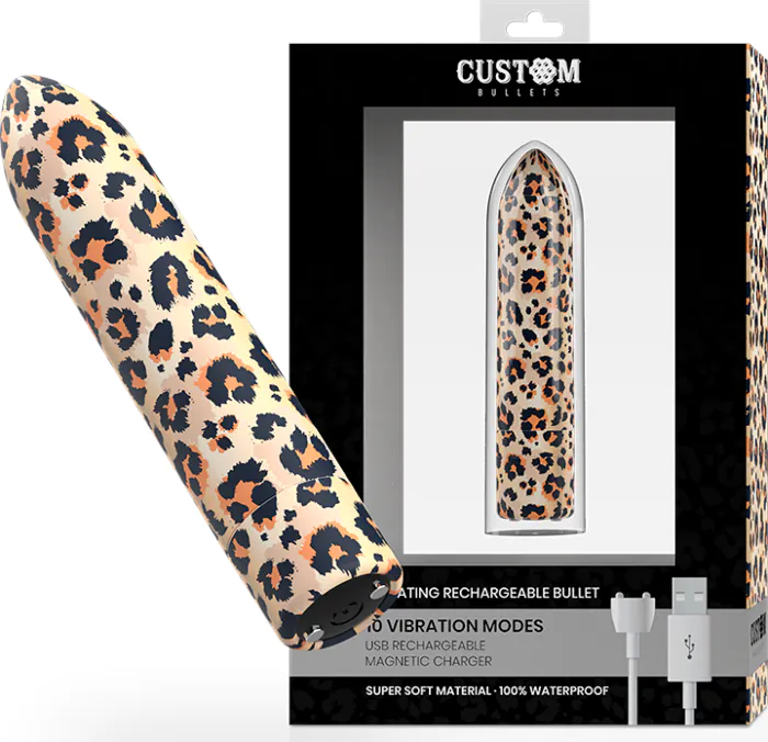 Estimulación intensa y precisa con la bala vibradora Custom Bullets Leopard, que ofrece 10 funciones de vibración, pulsación y escalado. Fabricada en silicona suave y ABS, garantiza una experiencia placentera y cómoda.
