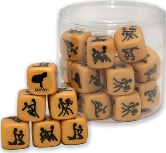 Añade un toque de picardía a tu fiesta con este dado dorado de posturas sexuales. Perfecto para despedidas de soltero/a y juegos atrevidos.