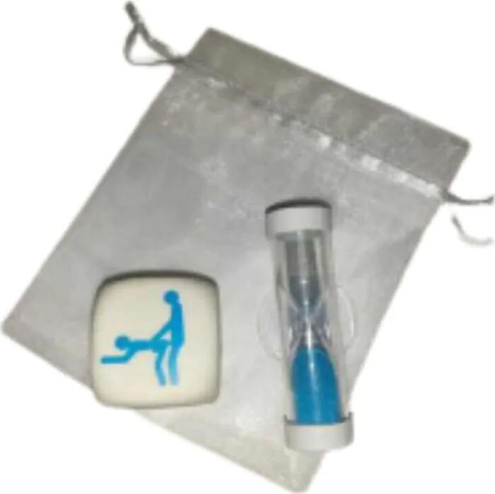 Simplemente lanza los dados y deja que el azar decida qué postura probar. Usa el reloj de arena para marcar el tiempo y disfruta de la experiencia. Para añadir un extra de placer, considera el uso de lubricantes a base de agua.