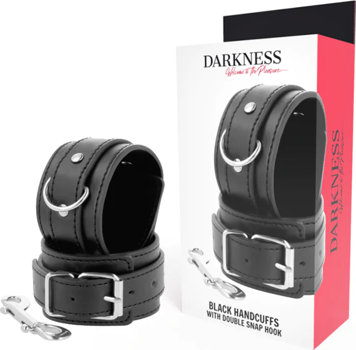 Disfruta de una sujeción cómoda y segura con las esposas ajustables Darkness. Cosidas a mano en PVC leather, ofrecen un acabado de calidad que resalta en cada juego. La doble cinta de refuerzo garantiza que se mantendrán firmes, mientras que su diseño ajustable se adapta a la mayoría de las muñecas.