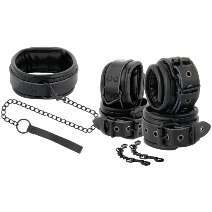 ¿Quieres llevar tus juegos eróticos al siguiente nivel? ¡Con las Darkness esposas y collar de cuero negro, la diversión está garantizada!