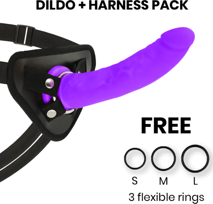 Set compuesto por arnés, anillo y consolador de silicona médica de 20 cm pensado para juegos en pareja o uso individual con arnés. Material hipoalergénico, libre de ftalatos y látex, se calienta rápido al contacto corporal y funciona bien con lubricantes a base de agua. Buena opción si buscas un dildo realista y seguro para usar en arnés.
