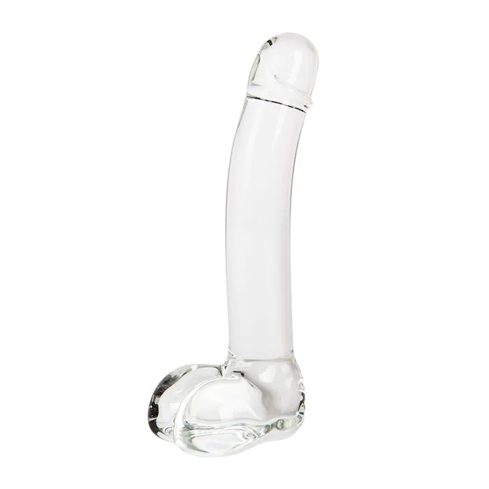 Te explico en pocas palabras: es un dildo de vidrio de alta resistencia con forma realista, ligeramente curvado y una punta en forma de glande. Se usa tanto para estimulación vaginal como anal; la base plana en forma de testículos sirve de tope y agarre. Lo que lo diferencia es que, al ser vidrio, puedes jugar con la temperatura para sensaciones distintas —frío o templado— y es muy fácil de mantener limpio.