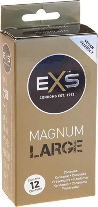 Los preservativos Magnum Large de Exs están diseñados para penes más grandes, ofreciendo un ajuste cómodo y seguro. Fabricados en látex natural y con lubricante de silicona, son indicados para quienes buscan una experiencia más placentera.