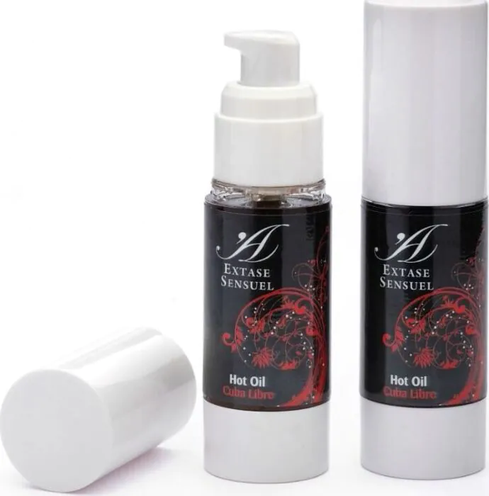 Aceite/gel estimulante Extase Sensual Cuba Libre: un formato pequeño de 30 ml con efecto calor y sabor intenso, pensado para masajes y caricias en pareja o en solitario. Compatible con preservativos de látex y dosificador airless para una aplicación más higiénica. Para quien quiere añadir calor localizado y sabor a los juegos íntimos sin complicaciones ni grandes envases.