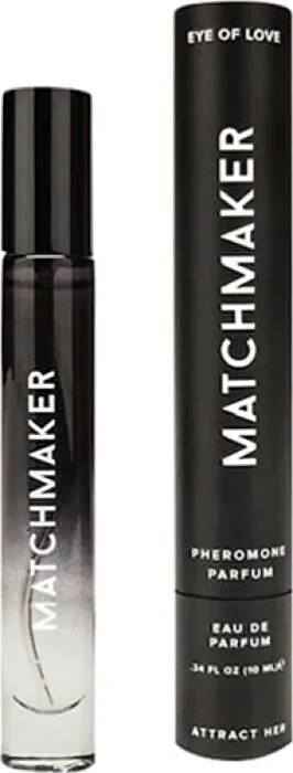 Atrae a Ella con el perfume de feromonas Matchmaker de EYE OF LOVE. Su aroma audaz y suave combina cedro, grosella negra y limón, indicado para uso diario.