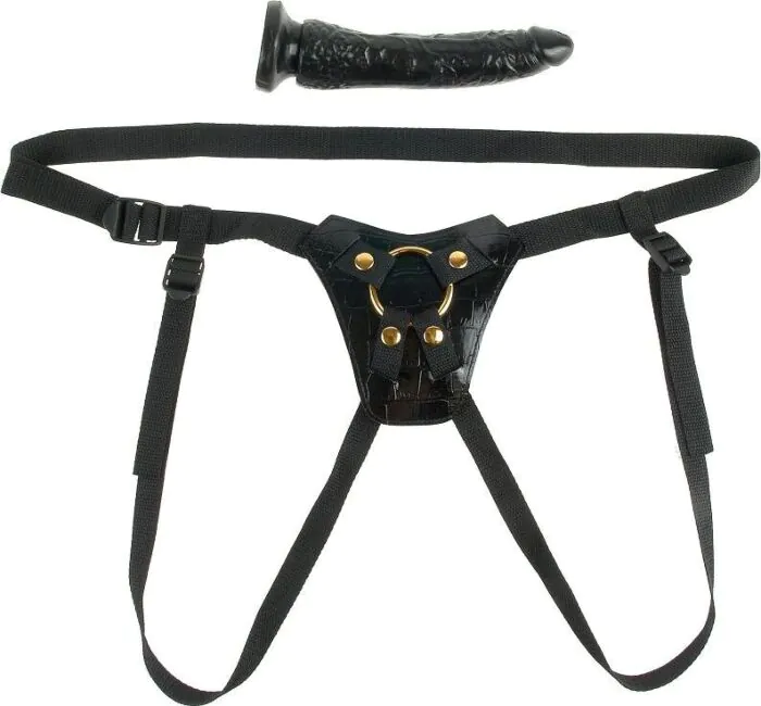 Domina el juego con este arnés de PVC y látex que se adapta a la mayoría de tallas. Ideal para quienes les gusta experimentar en pareja con comodidad.
