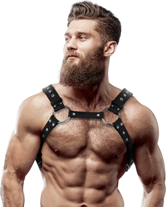 Este arnés de pecho de cuero vegano es indicado para quienes buscan destacar su imagen. Ajustable a todos los tamaños, te hará brillar en cualquier evento.