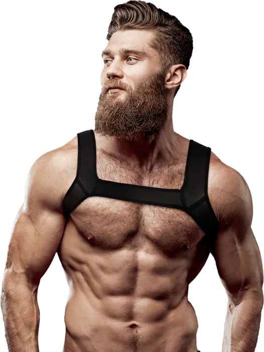 Este arnés de cuero vegano está diseñado para realzar tu figura masculina. Con tallaje flexible y ajuste recomendable, es indicado para quienes buscan destacar en cualquier ocasión.