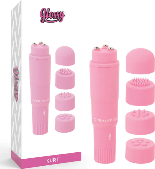Mini vibrador GLOSSY Kurt con cabezales intercambiables