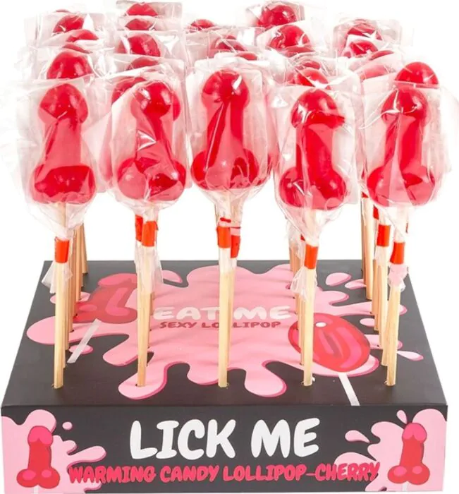 Es una piruleta de caramelo con forma de pene, 100% comestible, de la línea de golosinas divertidas de SECRETPLAY COSMETIC. Su sabor es cereza y tiene un efecto de calor picante pensado para añadir picardía a fiestas, despedidas o regalos de broma. Con unas dimensiones reducidas (21x12x31 mm) y un peso aproximado de 25 gramos, es un formato tipo "mini" que entra fácil en una copa o en un detalle para regalar.
