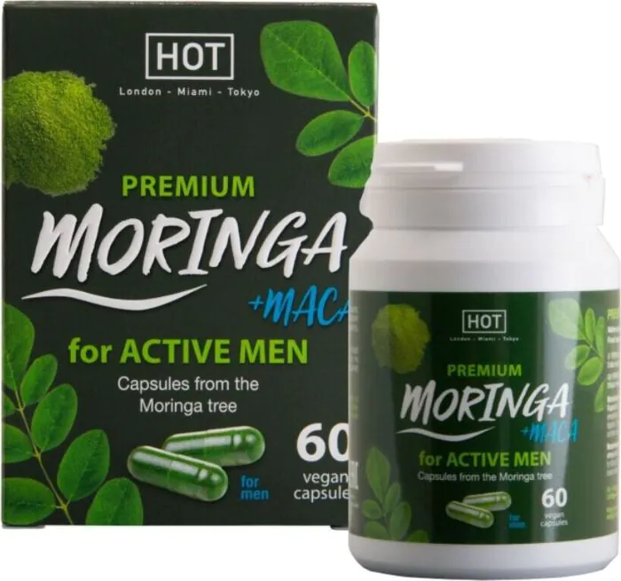Potencia tu energía y bienestar con las cápsulas para hombres HOT Moringa Men. Con ingredientes naturales como Moringa y Maca, son ideales para potenciar tu vitalidad.