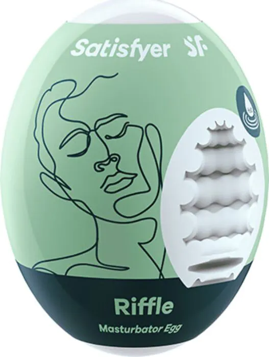 Este Riffle de SATISFYER EGGS es un huevo masturbador de tamaño compacto que trabaja la sensación mediante texturas internas y un material elástico llamado TPE Hydro-Active. Es decir, no depende de motores ni piezas electrónicas para dar sensación, sino de la fricción y la estructura interna que se adapta y estira a lo largo del pene. Por su formato y medidas es fácil de sujetar y muy discreto en la mano.
