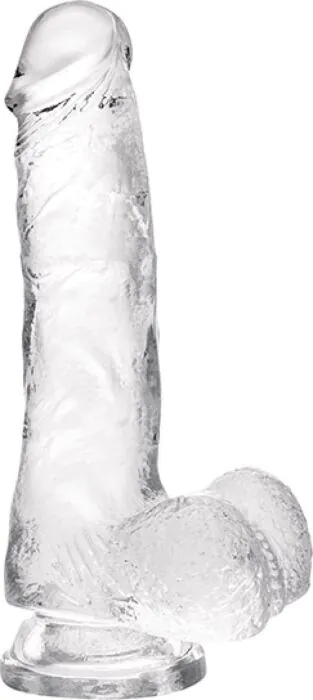 Este dildo transparente ofrece una experiencia realista con su diseño de venas y testículos. Indicado para quienes buscan una penetración cómoda y versátil.