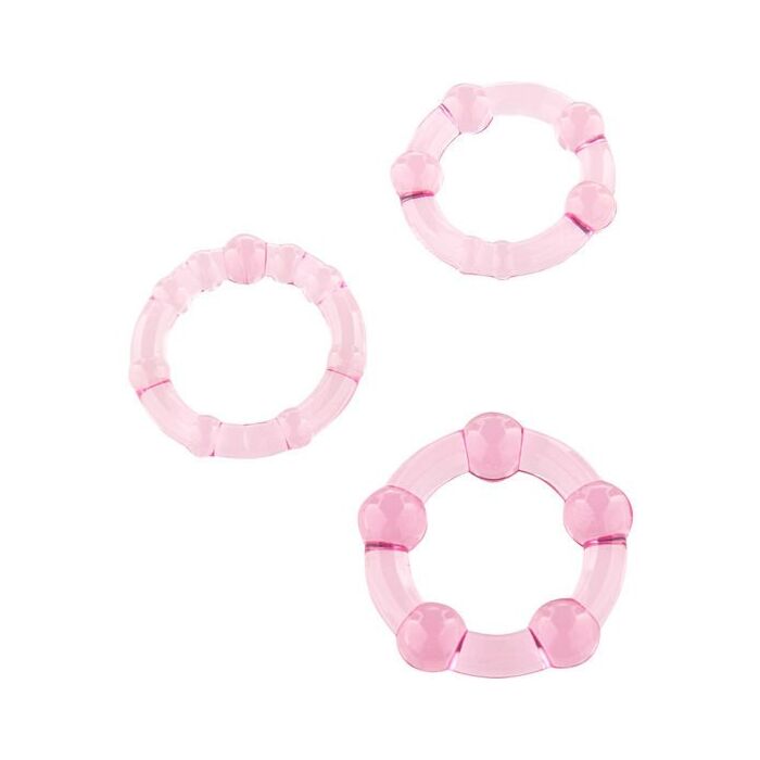 Juego Anillos Pene - Get Hard es mucho más que un simple kit de anillos para el pene. Este set de tres anillos de silicona, con tamaños de 21mm, 23mm y 24mm respectivamente, no solo se adapta a todos los penes, sino que también transformará por completo tus experiencias íntimas.