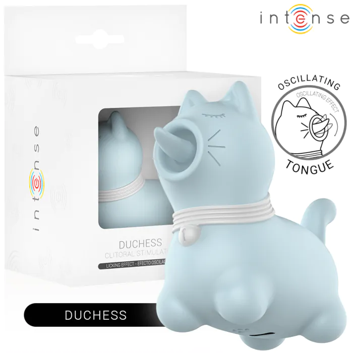 Déjate seducir por el Intense Fun Duchess, un estimulador de clítoris que ofrece una experiencia única gracias a su lengua rotativa 360º. Su diseño azul y compacto lo hace perfecto para disfrutar en solitario o en pareja. Fabricado con materiales seguros, es ideal para quienes buscan una estimulación suave y realista.
