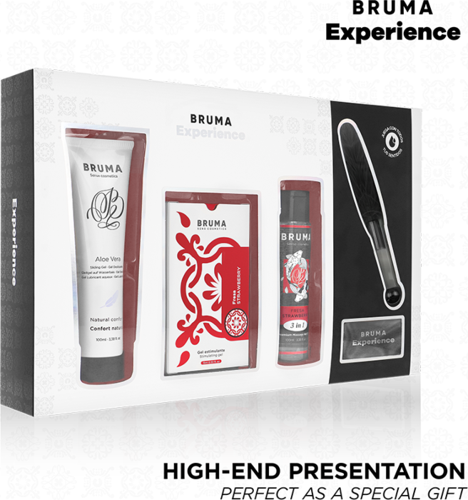 Disfruta de una experiencia sensual con el Kit Tentación Dulce Fresa de BRUMA. Incluye gel estimulante, lubricante natural y accesorios para momentos íntimos.