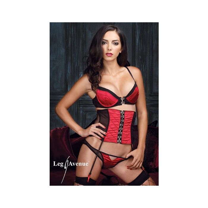 Leg avenue conjunto de sujetador, corse-liguero y tanga en rojo satinado