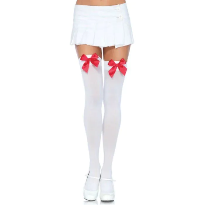 Descubre la combinación perfecta de elegancia y sensualidad con las Leg Avenue Medias de Nylon en color blanco con lazo rojo. Estas medias hasta la rodilla son el accesorio ideal para añadir un toque de coquetería a tus looks más atrevidos y seductores.