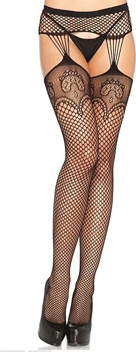 Atrévete a lucir estas medias en red de Leg Avenue que combinan sensualidad y versatilidad. Con un encantador motivo abstracto en la parte superior, son perfectas para cualquier ocasión, desde el día a la noche.