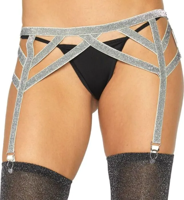 El liguero lurex plateado de Leg Avenue añade un toque de seducción a tu lencería. Confeccionado en poliéster, se adapta a diferentes tallas y realza tu feminidad.