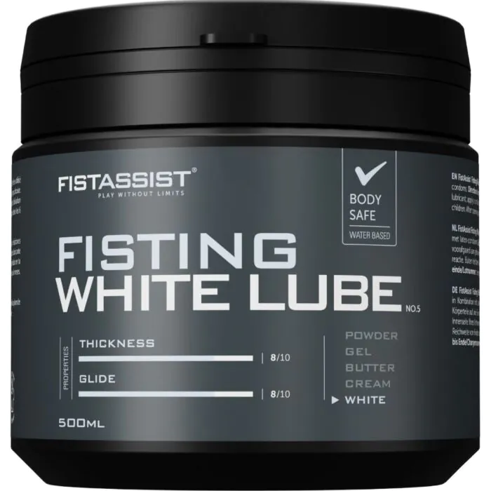 Gel lubricante blanco ultraespeso de 500 ml pensado para juegos con intención visual y para quienes buscan una sensación acolchada y de deslizamiento prolongado. Se adhiere sin quedar líquido ni pegajoso, es apto para pieles sensibles, compatible con condones y juguetes y vegano. Perfecto si quieres un producto con resistencia controlada y fácil limpieza con agua.