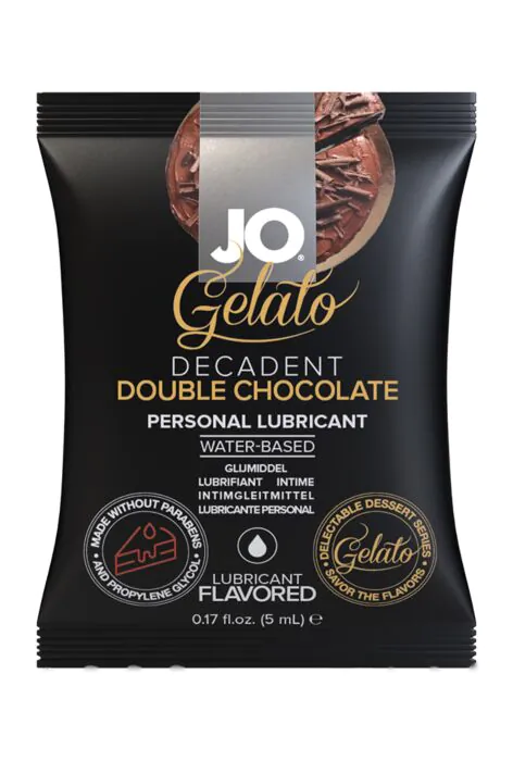 Este sachet Gelato Double Chocolate de System JO es un lubricante a base de agua con aroma y sabor a una mezcla de chocolate con leche y chocolate amargo pensado especialmente para juegos orales y para quien quiere un acabado suave y fácil de limpiar. Su formato monodosis de 5 ml es práctico para viajes, citas o simplemente para probar el sabor sin comprar un envase grande.
