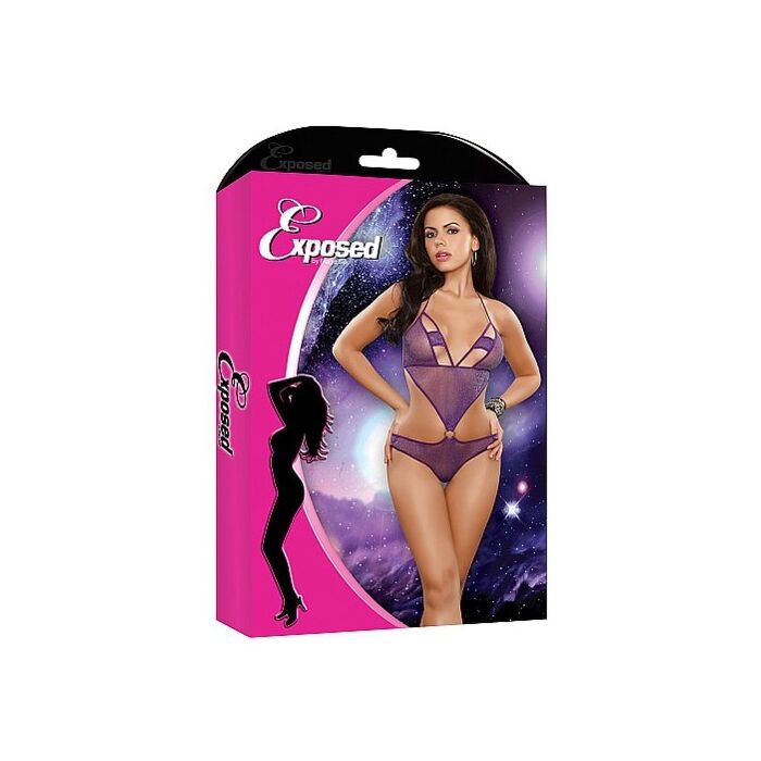 De la magnífica colección Magic Silk Exposed llega este BODY brillante MORADO con detalle en los pechos y abierto en los laterales unido por una anilla anudao al cuello y a la espalda. Estarás impresionante en todo momento.