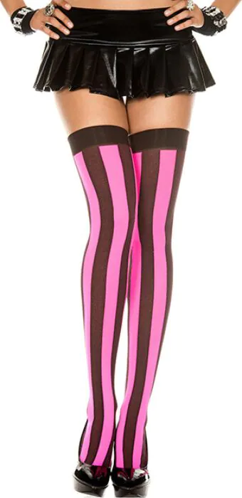 Estas medias de Music Legs presentan un patrón de rayas verticales en combinación de negro y rosa, un recurso visual que ayuda a estilizar la pierna.No incluyen detalles de material ni tallas en la referencia del fabricante, por eso conviene valorarlas por su estética y patrón.