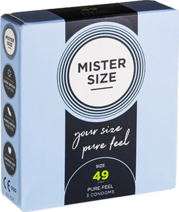 Los preservativos MISTER SIZE de 49 mm ofrecen un ajuste cómodo y seguro para penes ligeramente más estrechos, permitiendo disfrutar de una intensa sensación durante el acto sexual.