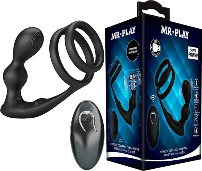 Experimenta una estimulación intensa y precisa con el anillo para pene MR PLAY que incluye un plug anal. Su control remoto te permite explorar 12 funciones de vibración. Ideal para quienes desean mejorar su vida sexual con un juguete versátil y cómodo.