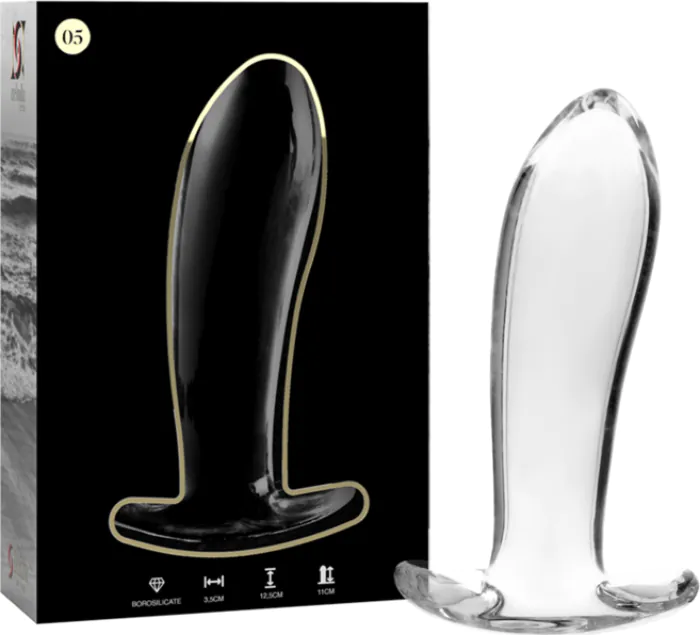 Plug de cristal con un y resistente, indicado para principiantes en la exploración anal. Su punto débil es que no es flexible, lo que puede no ser del agrado de todos. Recomendable para quienes buscan materiales seguros y duraderos.