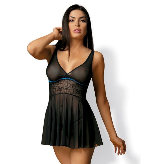 Carat es fabuloso babydoll en color negro con detalle en azul fabricado por la prestigiosa marca Obessive.
