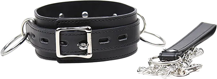 Mejora tus sesiones de juego con este collar de bondage que ofrece una sujeción cómoda y segura. Fabricado en imitación piel, cuenta con una cadena metálica y anillas que te permiten añadir accesorios para intensificar la experiencia. Indicado tanto para quienes se inician en el BDSM como para los más experimentados.