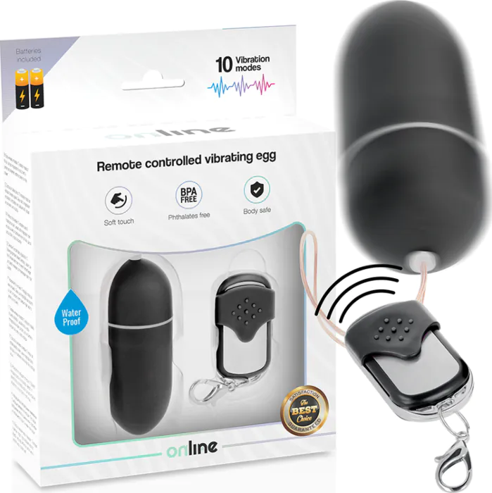 Potente huevo vibrador de ONLINE con control remoto para disfrutar de 10 modos de vibración. Indicado para parejas que buscan diversión discreta en cualquier lugar.